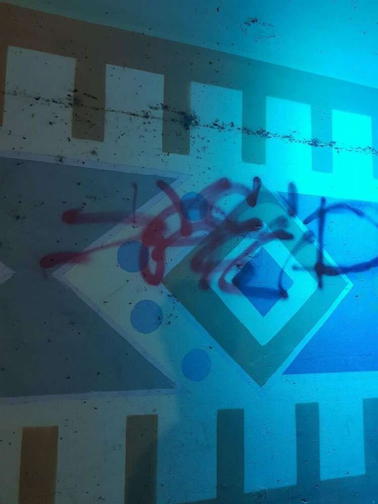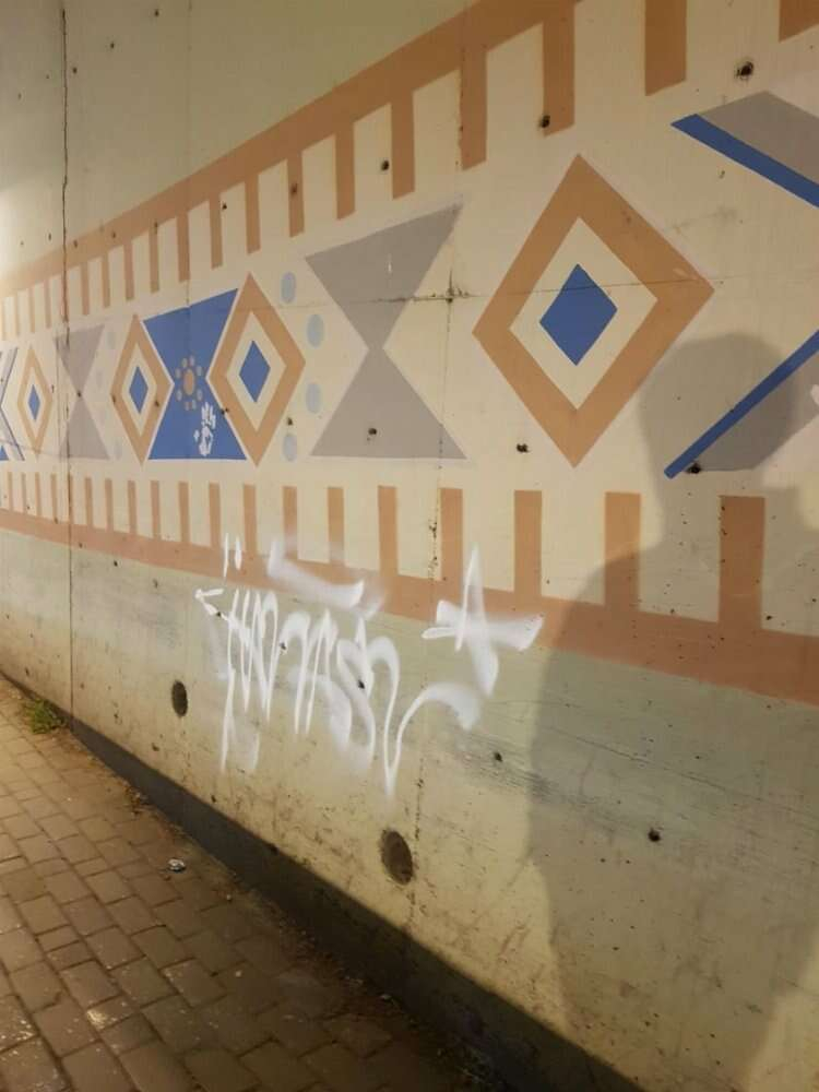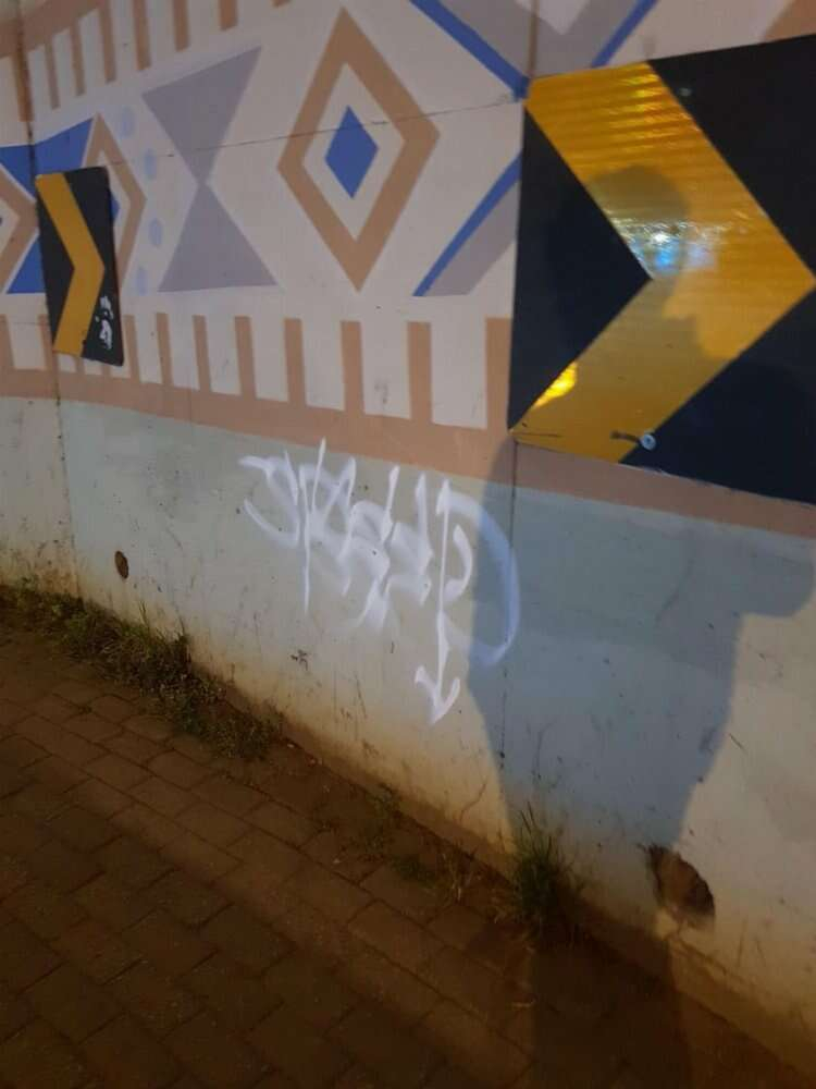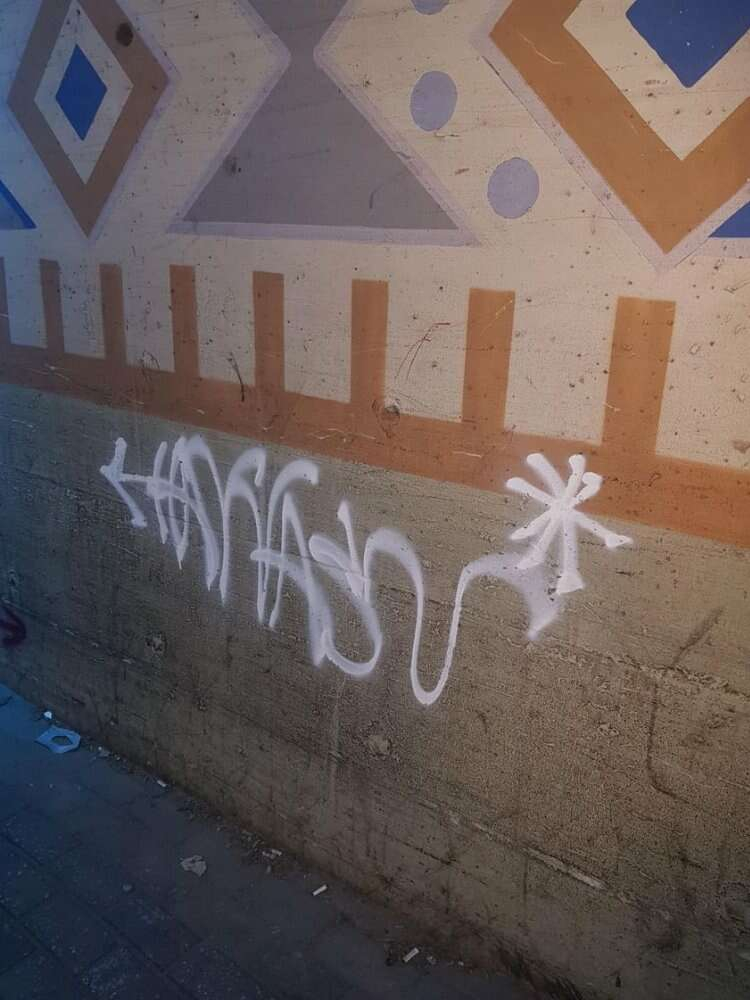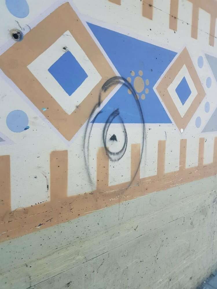 Vandallar, belediyenin daha önce yaptığı duvar süslemelerine sprey boyalarla zarar verdi.