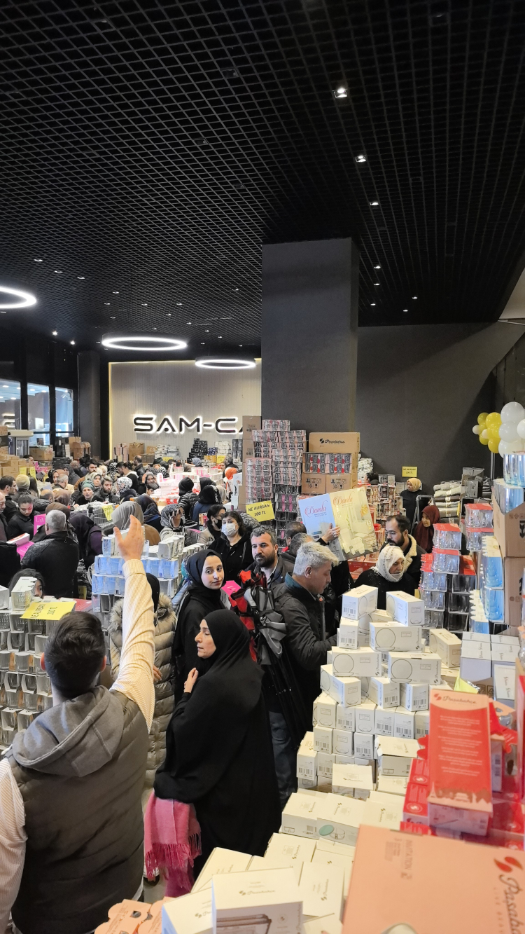 Bursa'nın İnegöl ilçesinde her şeyin 100 TL'ye satıldığı indirim mağazası açıldı. Açılan mağazada vatandaşlar ürünleri alabilmek için Alanyurt yolundaki iş yerinin önünde saatlerce beklediler.