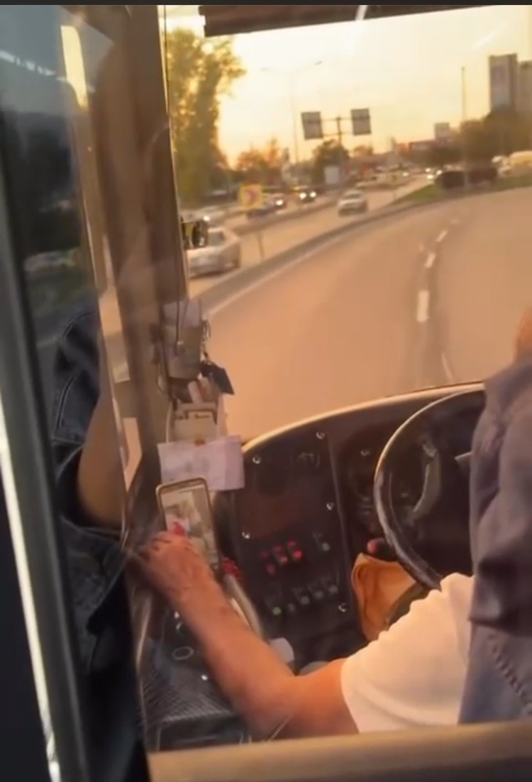 Acemler köprülükavşağında seyreden bir özel halk otobüsü, trafikte seyrederken telefondan açtığı videoyu seyretti.