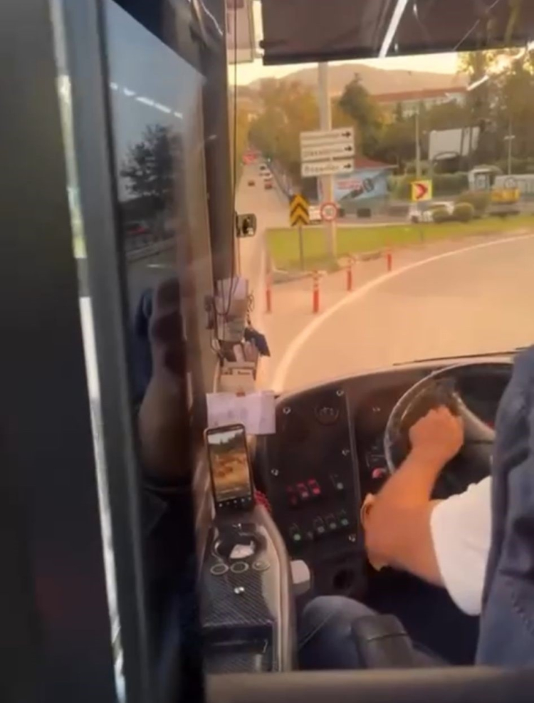 Bursa'da video seyrederek yolcu taşıyan otobüs şoförü yürekleri ağza getirdi!