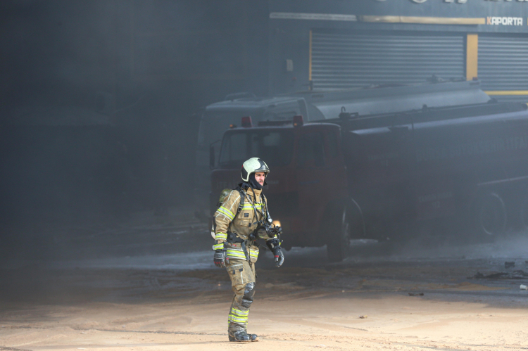 Yiğitler Mahallesi'ndeki OTOSANSİT'te madeni yağ satışı üzerine faaliyet gösteren bir iş yerinde henüz bilinmeyen nedenle yangın çıktı.