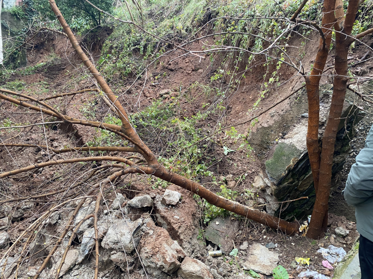 Bursa'nın Osmangazi ilçesinde etkili olan yoğun yağışlar nedeniyle bir binanın yanında bulunan istinat duvarı çöktü. Duvarın yıkılmasıyla birlikte bazı ağaçlar kökünden sökülerek binaya doğru devrildi.