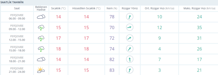 CUMARTESİ: Kuvvetli sağanak yağışlı, 18 derece