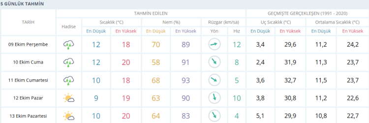 İŞTE BURSA İÇİN 5 GÜNLÜK HAVA DURUMU TAHMİNİ (9 EKİM 2025)