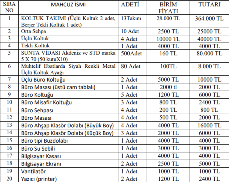 Malların toplam bedeli 659 bin 100 TL olarak açıklandı.