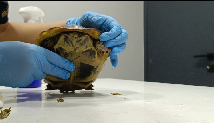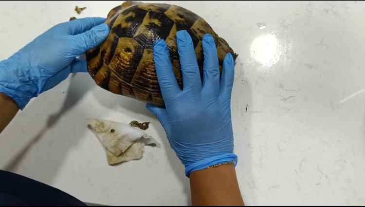 Kaplumbağanı sadece fiziksel değil, yaşadığı travma nedeniyle psikolojik olarak da kötü durumda olduğunu belirten Ölmeztürk, “Kaplumbağanın üst kabuğunda da ciddi yanık izleri var. Geldiği günden beri çok tedirgin. Biz yanındayken başını kabuğundan hiç çıkarmıyor. Bu durum, yaşadığı travmanın ne kadar büyük olduğunu gösteriyor” diye konuştu.