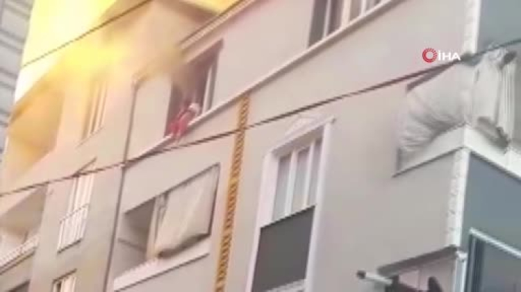 Yangını fark eden çevredekiler durumu ekiplere bildirirken, anneanne büyük bir panik içerisinde torununu pencereden aşağıda bekleyen vatandaşların üzerine bıraktı.