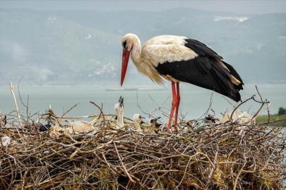 Tekrar göl manzaralı yuvasına gelen Yaren'in 2 yavrusu yumurtadan çıktı.