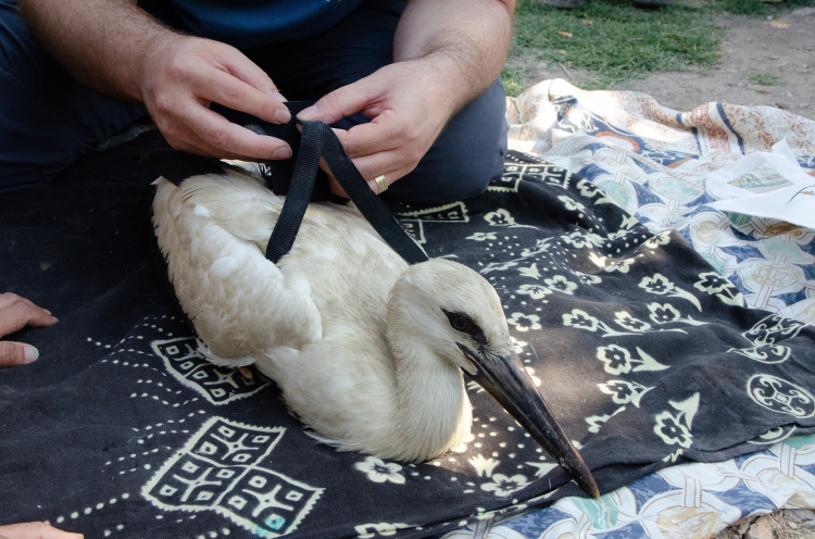 Bursa'da Yaren leyleğin yavruların uydu vericisi takıldı