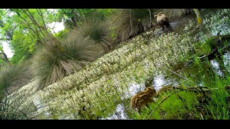 Doğa Koruma ve Milli Parklar 2. Bölge Müdürlüğü tarafından kurulan fotokapana, bu sefer yapan domuzları takıldı. Yavru domuzların panik halinde yiyecek araması kameralarca kaydedildi.