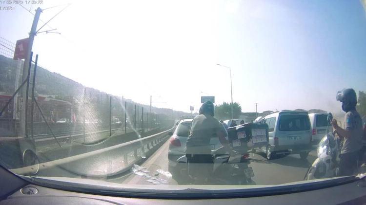 Osmangazi ilçesi İzmir Yolu Caddesi üzerinde meydana gelen olayda, yoğun trafikten kaçmak isteyen motosikletlilerintrafik kurallarını hiçe sayarak şerit değiştirdiği ve araçların arasından ilerledikleri görüldü.
