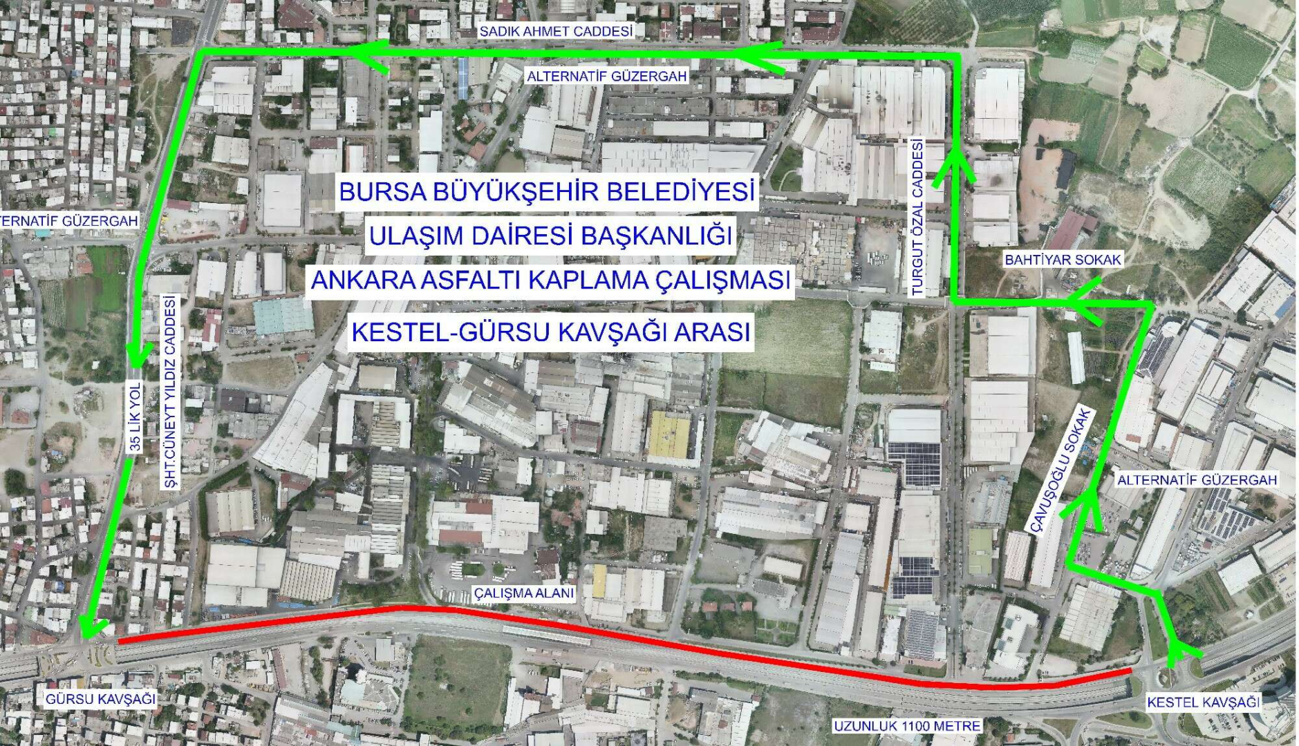 Bursa Büyükşehir Belediyesi tarafından yapılacak asfalt yenileme çalışmaları kapsamında Bursa – Ankara yolu Bursa geliş istikameti Gürsu Kavşağı ile Kestel Kavşağı arası 1 Eylül Cuma (BUGÜN) günü saat 23.00’dan 02 Eylül Cumartesi (YARIN) günü saat 06.00’a ve 02 Eylül Cumartesi (YARIN) günü saat 23.00’dan 03 Eylül Pazar günü saat 11.00’a kadar trafiğe kapatılacaktır.