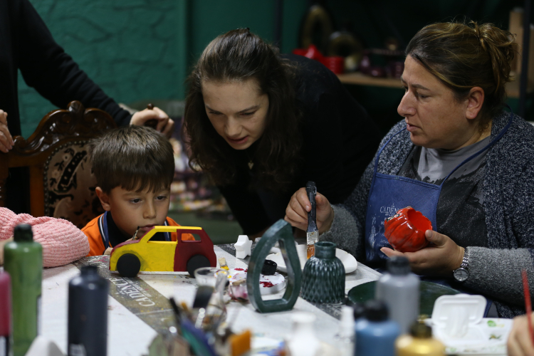 Kadınların atölyeye çocuklarıyla gelip hem keyifli vakit geçirdiğini hem de kazanç sağladığını belirten Yıldırım, "Salı ve perşembe akşamları kurslarımız var. Genelde 10 kişi kadar oluyoruz. Değişik dönemlerde gelen gruplarımız var. Geri dönüşüm yapıyoruz, kendi objelerimizi boyuyoruz. Buradaki amacımız insanların mutlu olması. Umutlarımızın tükendiği yerde böyle bir şey karşımıza çıktı. Yeniden doğmaya çabaladık ve başardık." dedi.