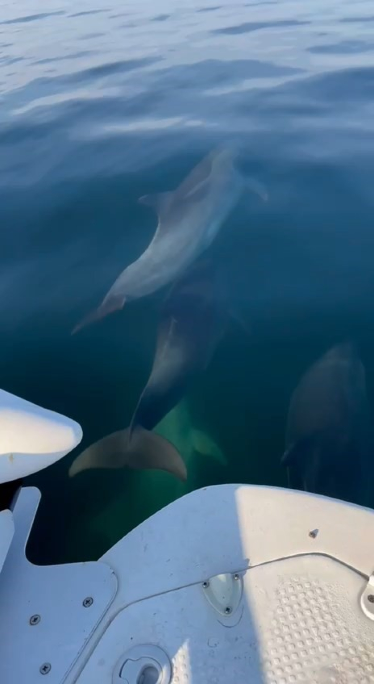 Ara ara tekneden uzaklaşan yunusların, bir süre sonra yeniden teknenin yanına gelerek balıkçıya eşlik etmesi dikkat çekti.