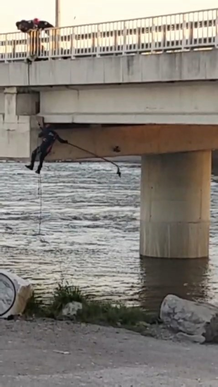 Vatandaşların ihbarı üzerine bölgeye gelen Büyükşehir itfaiye ekipleri, halat yardımıyla köprü altına inerek güvercinleri kurtarmak için çalışma başlattı.