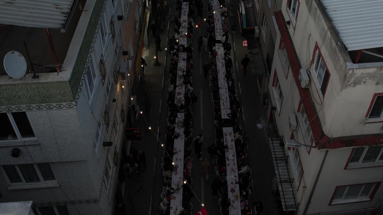 Yüzlerce metre boyunca kurulan uzun iftar sofraları mahalle sakinlerini ve şehir dışından gelen misafirleri bir araya getirdi.