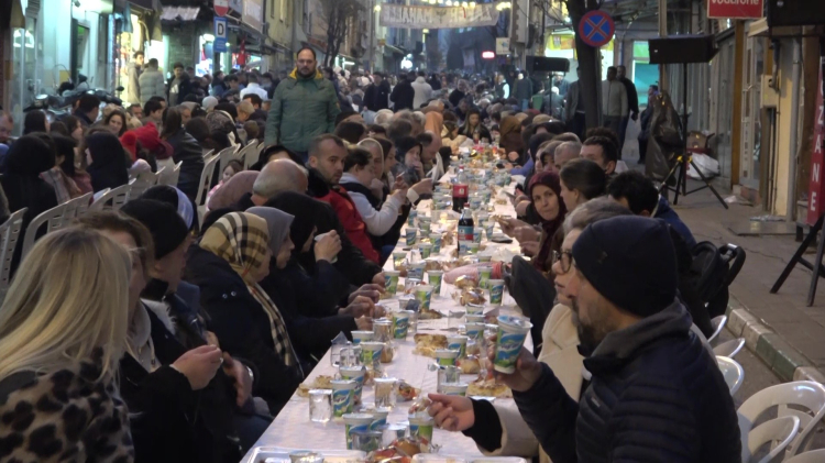 Bursa'da yüzlerce metre uzayan sofrada 4 bin 500 kişi iftar yaptı