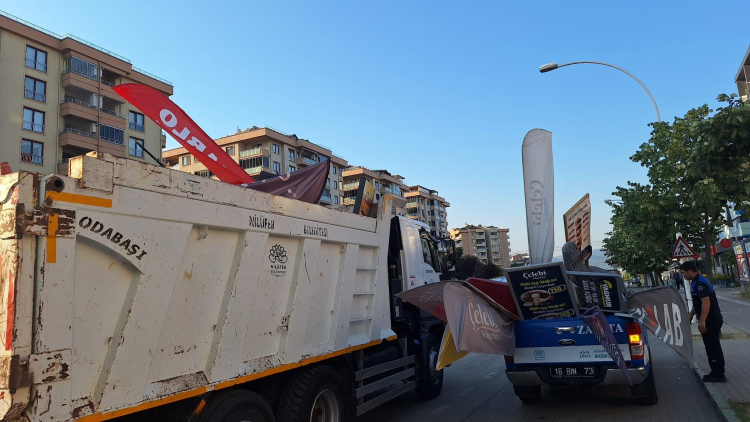Bursa'da zabıta duba ve tabelaları topladı