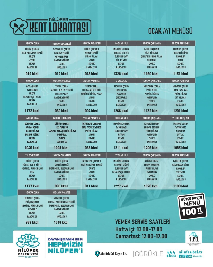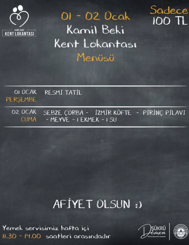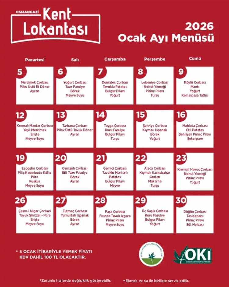 Büyükşehir Belediyesi'nin Kent Lokantası fiyatları ise henüz yayımlanmadı.