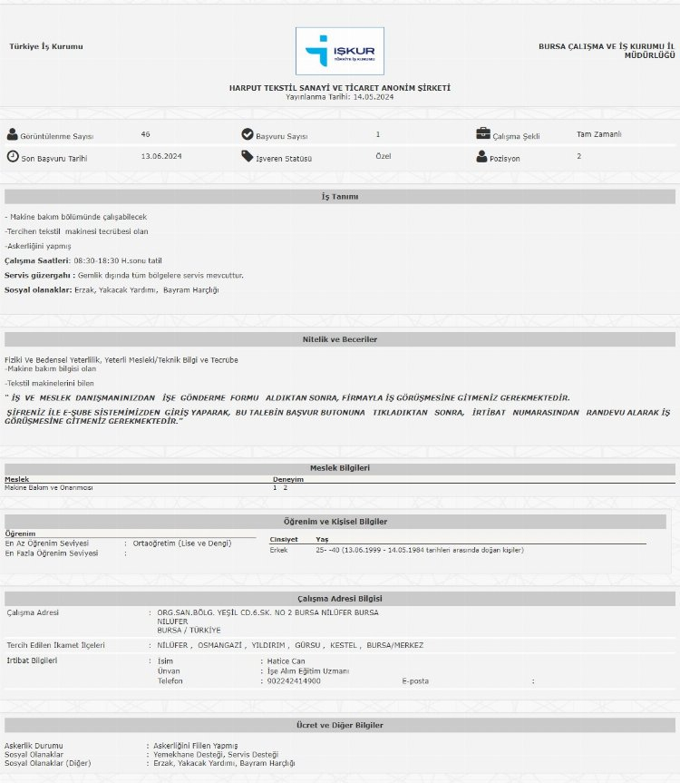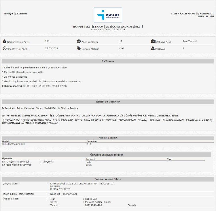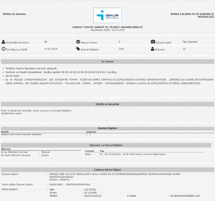 1980 yılından bu yana Bursa'da tekstil sektöründe faaliyet gösteren Harput Tekstil Sanayi Ve Ticaret Anonim Şirketi, çok sayıda işçi alınacağını duyurdu. İşte detaylar...