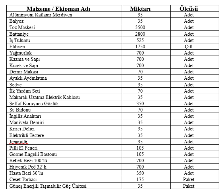 İhale kapsamında konteynerlere konulacak malzemeler de belli oldu.