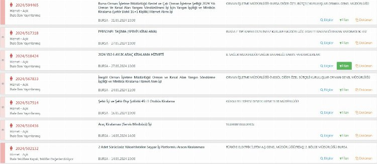 Bakan Şimşek'in dün açıkladığı kamuda tasarruf tedbirleri sonrası Elektronik Kamu Alımları Platformu (EKAP) üzerinden Bursa'daki 3 kamu kuruluşu araç kiralama ihalesi açtı.