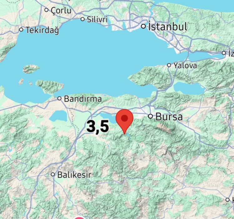 Afet ve Acil Durum Yönetimi Başkanlığı (AFAD), Bursa'nın Mustafakemalpaşa ilçesinde 3,5 büyüklüğünde deprem meydana geldiğini açıkladı.