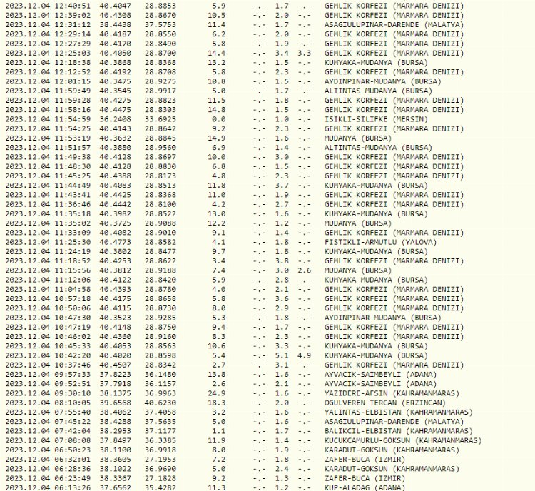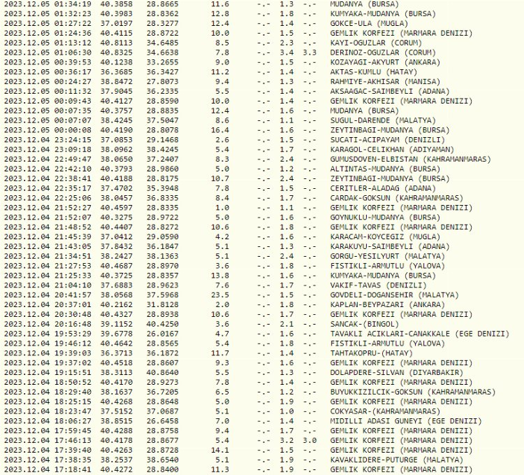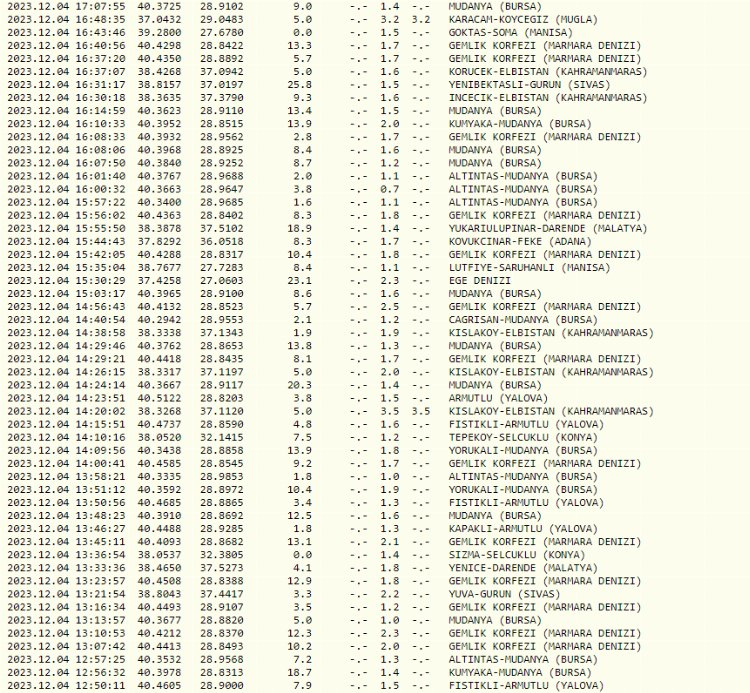 Can ya da mal kaybının yaşanmadığı deprem, vatandaşlar arasında paniğe neden olurken Boğaziçi Üniversitesi Kandilli Rasathanesi Ve Deprem Araştırma Enstitüsü verilerine göre son 24 saat içinde Bursa ve Yalova illerinde 100’ün üzerinde farklı büyüklüklerde artçı meydana geldi.