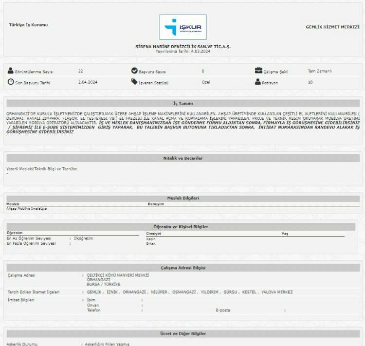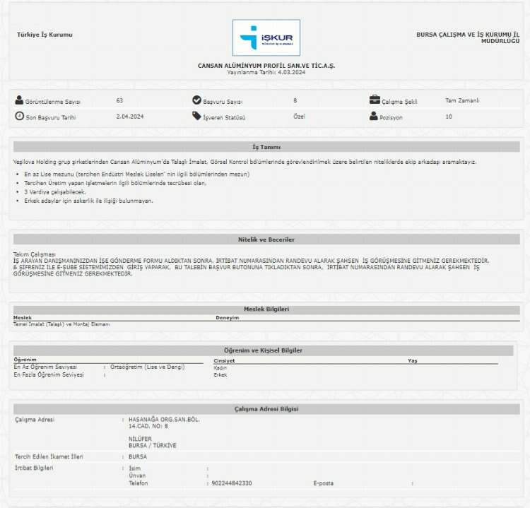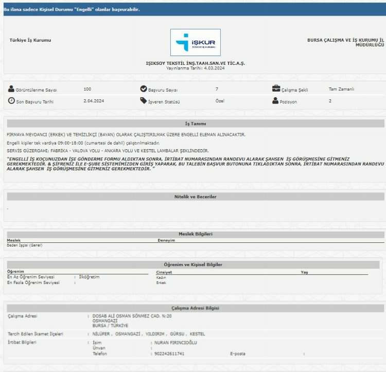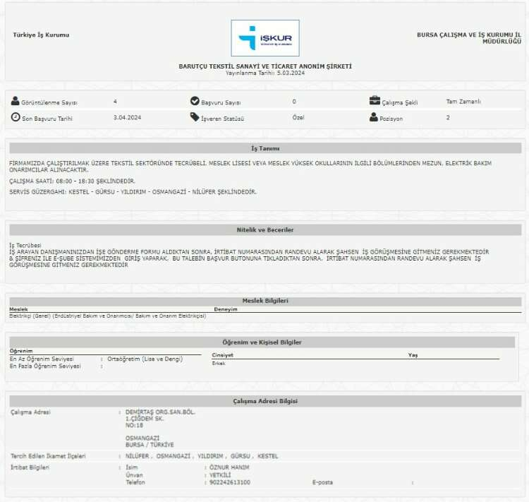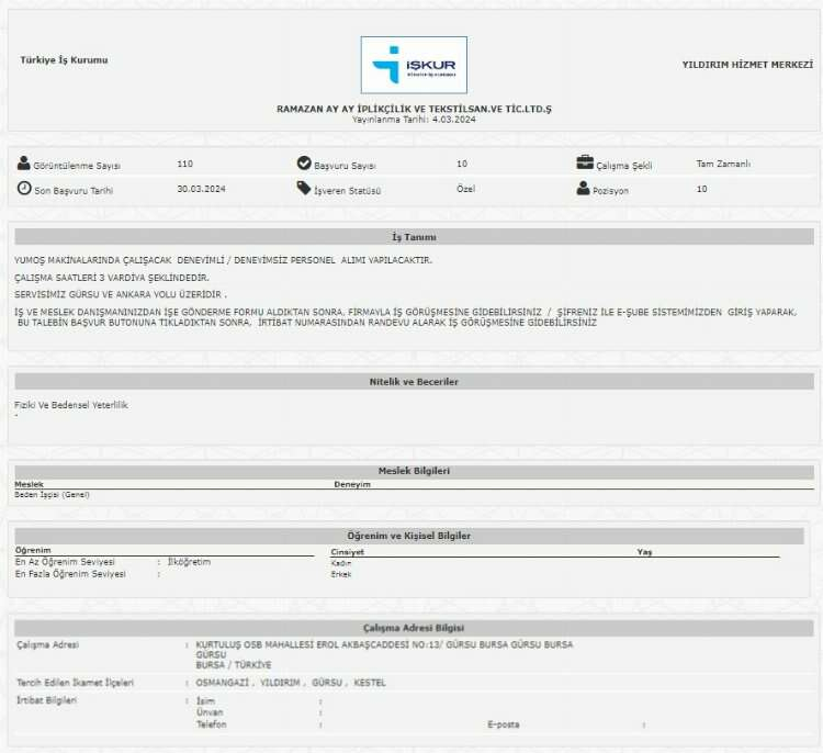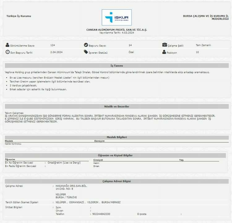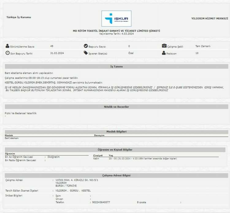 İŞKUR üzerinden yayımladığı ilanlarla personel arayan firmalar şartlarını ve iş pozisyonlarını da paylaştı.