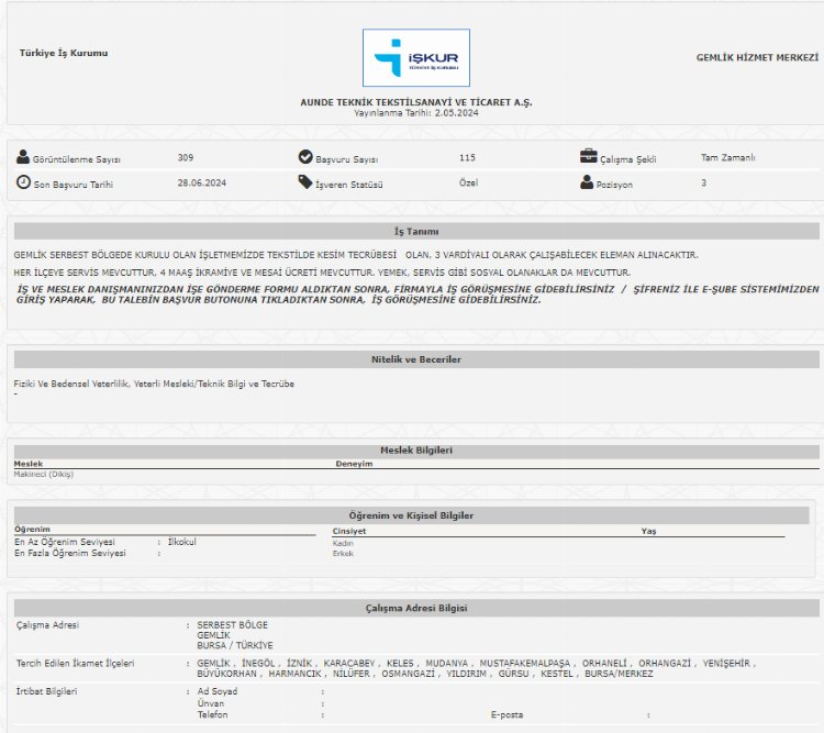 Bursa'da dev firmalar art arda yayımladıkları ilanlarla çok sayıda işçi alınacağını duyurdu. ÜÇGE, Karesi, Köfteci Yusuf, Aunde... | İşte ayrıntılar...