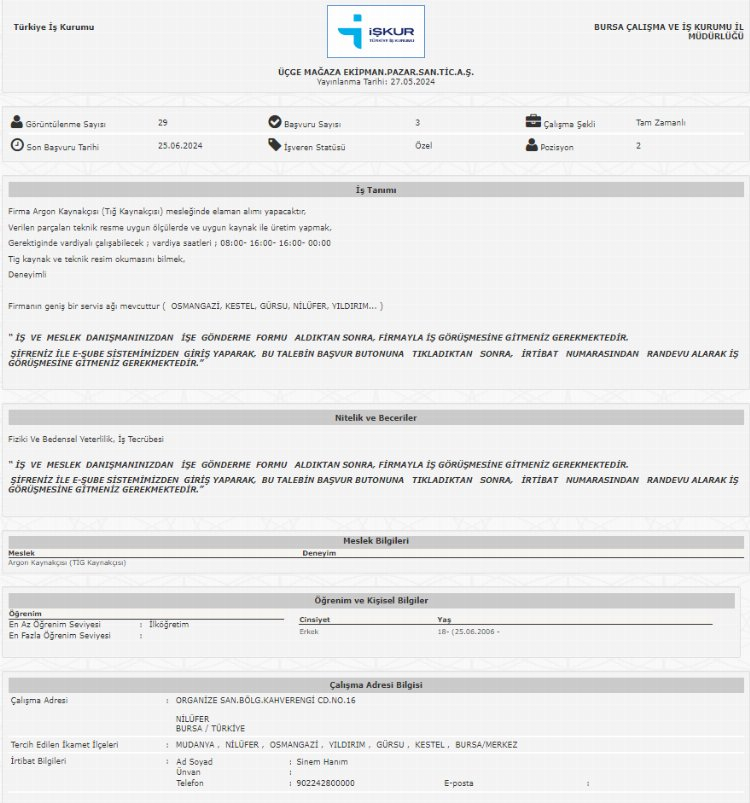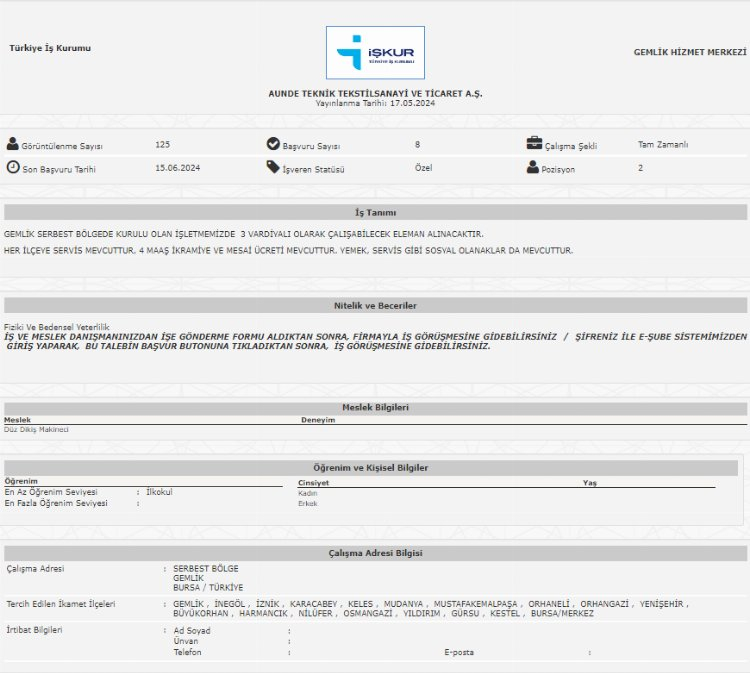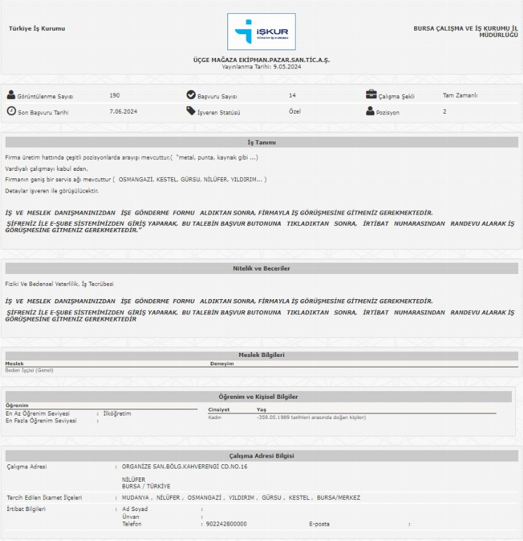 İŞKUR üzerinden yayımlanan ilanlarda firmaların alacakları personelin şartlarını ve iş pozisyonlarını da paylaştı.