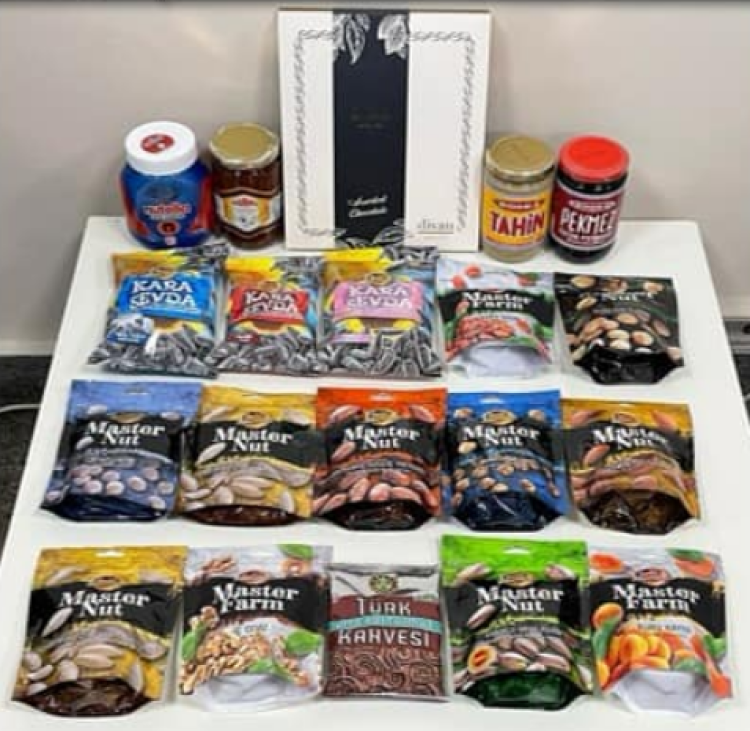 Paketin içerisinde, bal, tahin, pekmez, sürülebilir çikolata, türk kahvesi ve çeşitli kuruyemişler bulunuyor.
