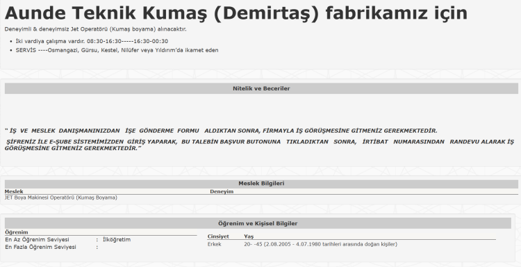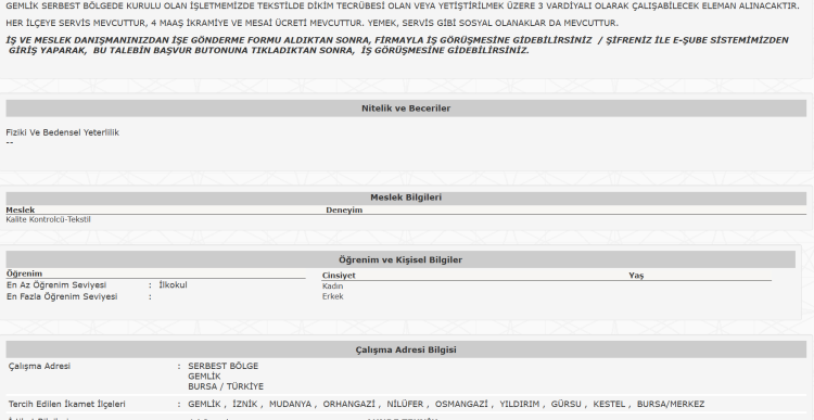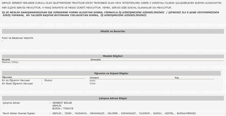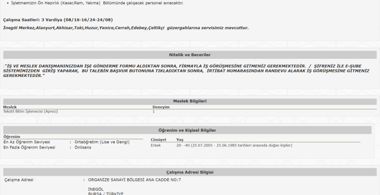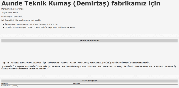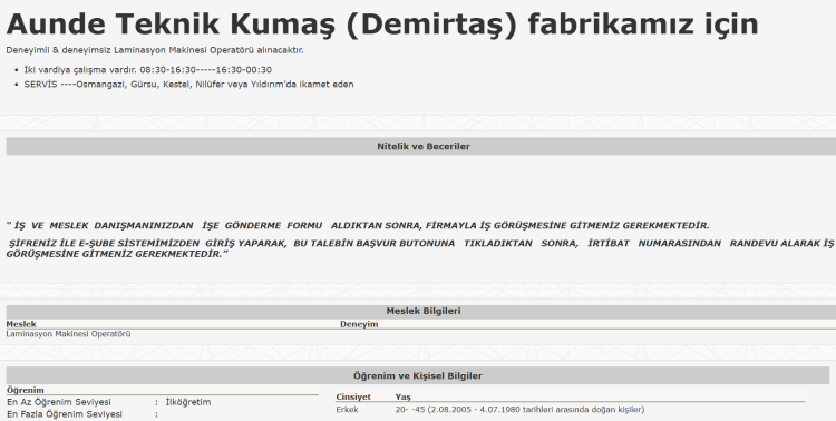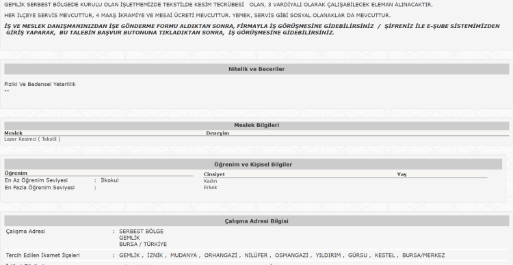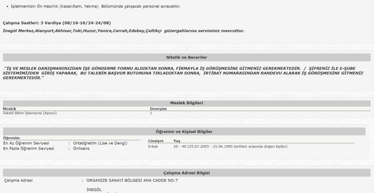Özellikle tekstil, otomotiv, makine-metal, mobilya gibi sektörlerde faaliyet gösteren büyük firmalar, İŞKUR üzerinden yeni işe alım ilanları yayımladı.