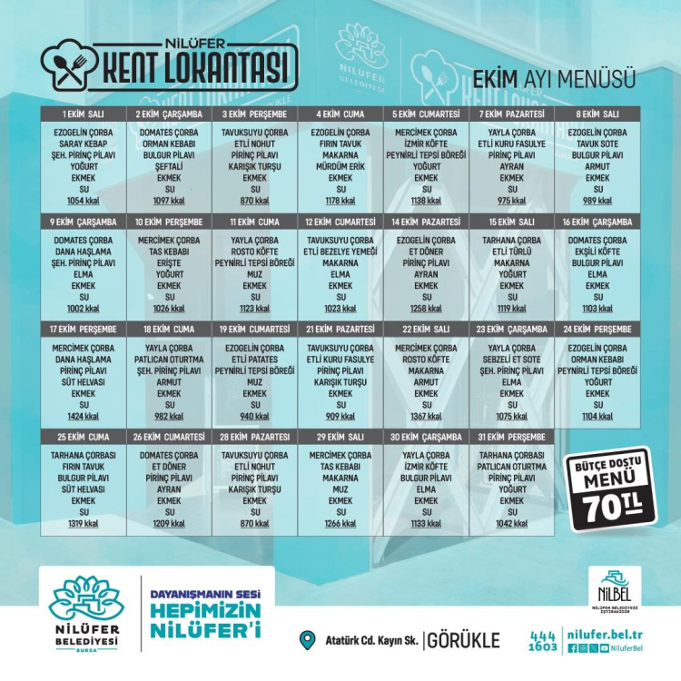 NİLÜFER BELEDİYESİ KENT LOKANTASI EKİM AYI MENÜSÜ