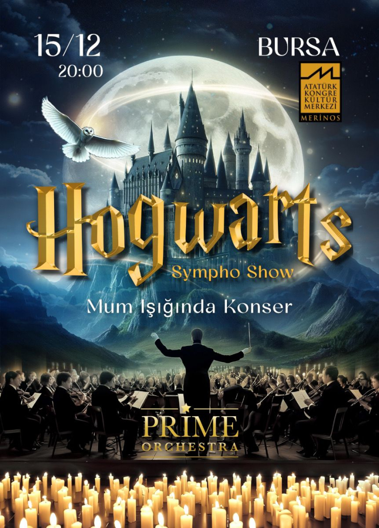Efsanevi PRIME Orkestrası, dünya turunun bir parçası olarak mum ışığında canlı konser olan muhteşem HOGWARTS Sympho Show'u Bursa'da sunacak.