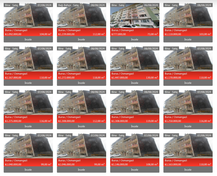 Milli Emlak Genel Müdürlüğü, Osmangazi ilçesine bağlı Çekirge ve Osmangazi mahallelerinde bulunan kamu lojmanlarındaki 24 daireyi satışa çıkardı.