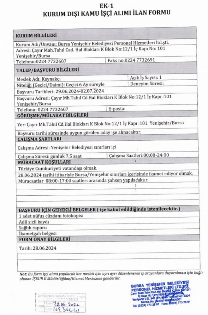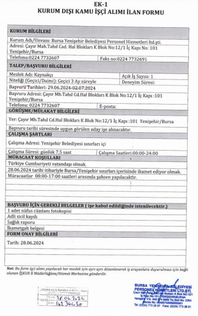 İŞTE YENİŞEHİR BELEDİYESİ KPSS'SİZ İŞ İLANLARI VE İSTENEN ŞARTLAR...