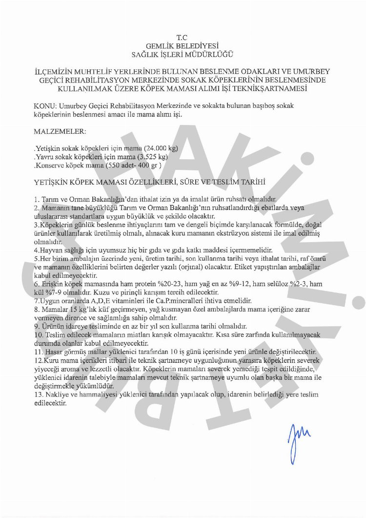 Sokak köpekleri için; 24 ton yetişkin sokak köpeği maması, 3 ton 525 kilogram yavru sokak köpeği maması ve 550 adet (400 gram) konseve köpek maması alınacak.
