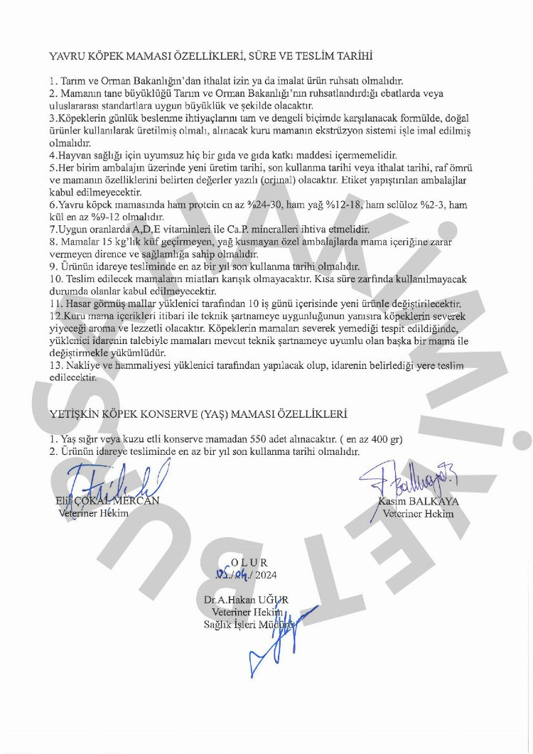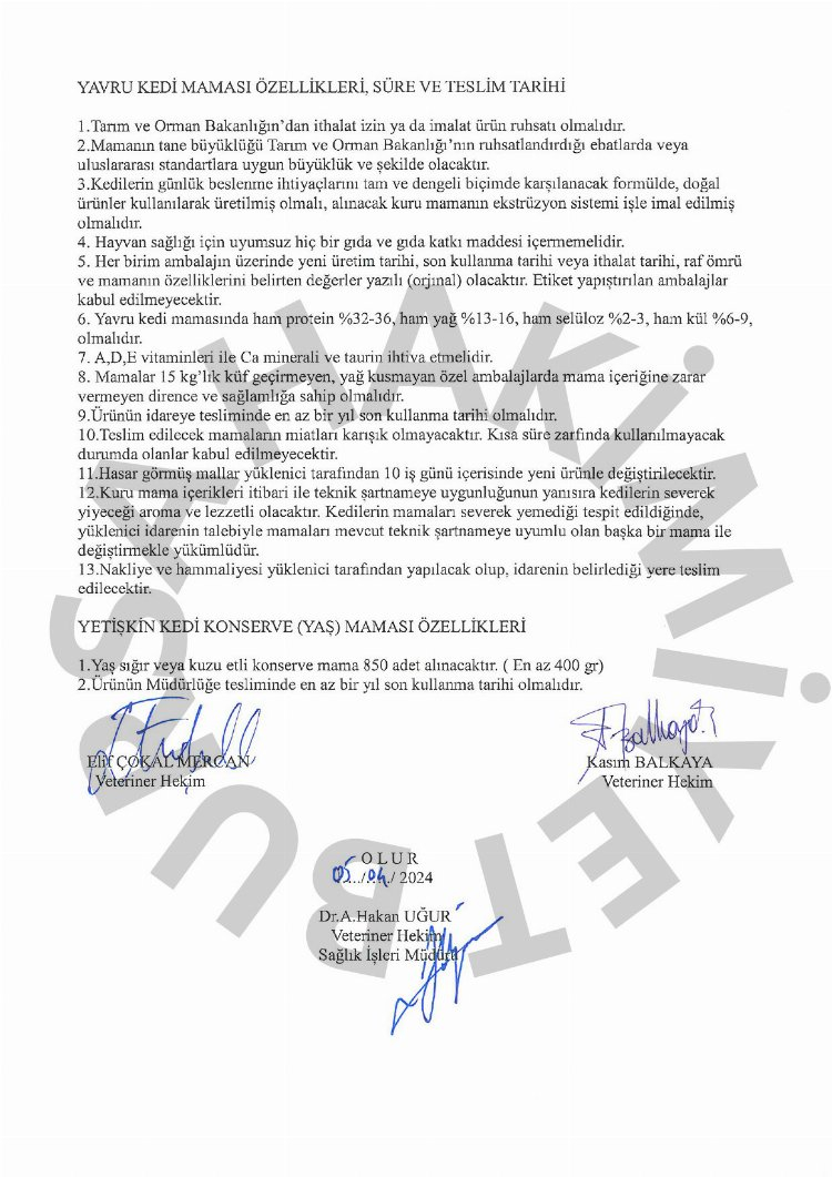 Sokak hayvanlarına mama alımı için açılan ihale açık ihale usulü ile yapılacak. İhaleye en son teklif 10 Mayıs 2024 tarihine kadar verilebilecek.