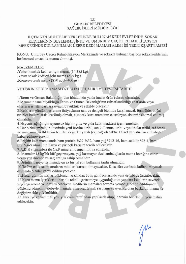 Gemlik Belediyesi Destek Hizmetleri Müdürlüğü, ilçe sınırları içerisindeki sokak hayvanları için tonlarca kedi ve köpek maması alacak.