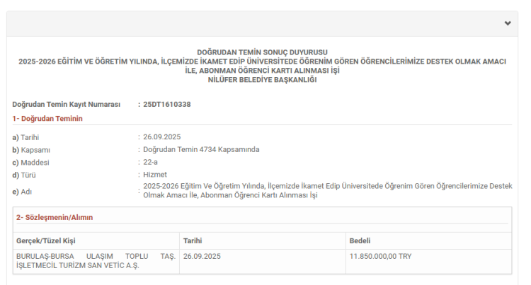 Belediye yönetimi, BURULAŞ'a öğrenci abonman masrafları için 11 milyon 850 bin TL ödedi.