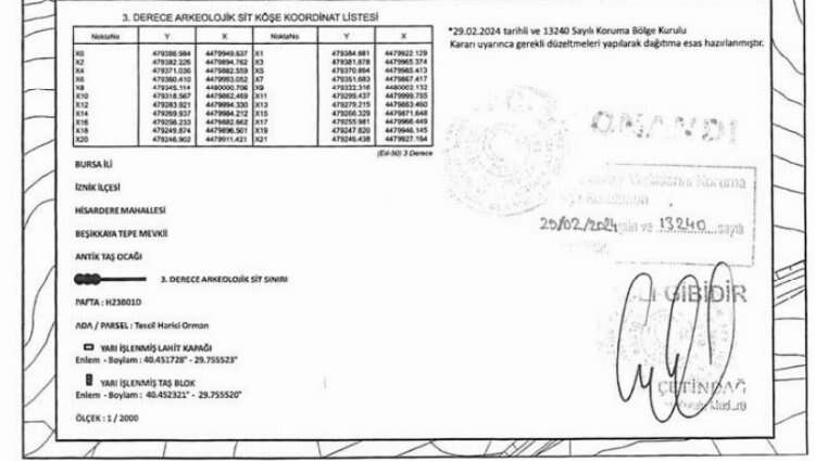 Bursa'nın İznik ilçesinde bulunan ormanlık alan 3. derece arkeolojik sit alanı olarak kabul edildi.