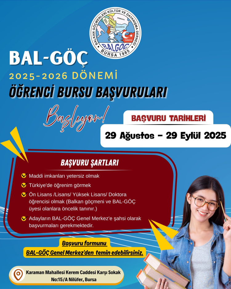 Bursa merkezli Balkan Göçmenleri Kültür ve Dayanışma Derneği (BAL-GÖÇ), üniversite öğrencilerine yönelik burs başvurularının başladığını duyurdu.