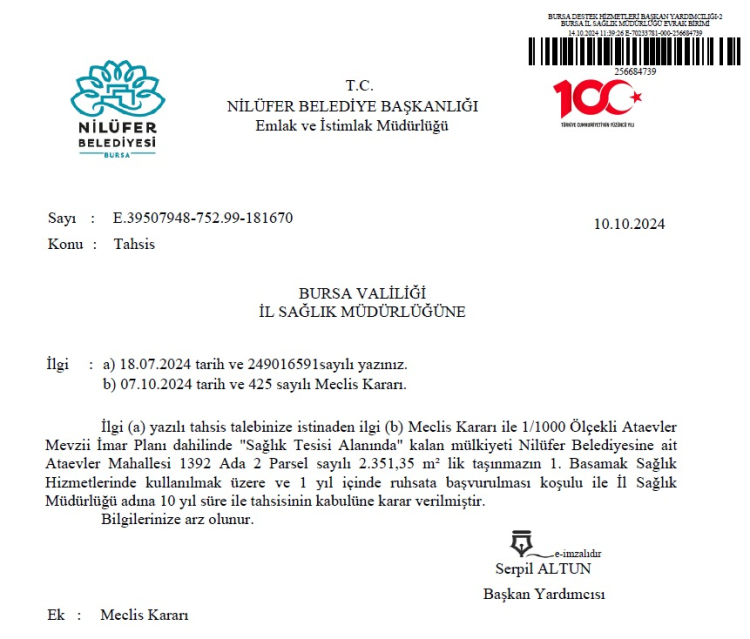 Bursa İl Sağlık Müdürlüğü, Nilüfer ilçesi Ataevler Mahallesi’nde yapılacak Nilüfer Hatun Aile Sağlığı Merkezi için ihaleye çıktı.
