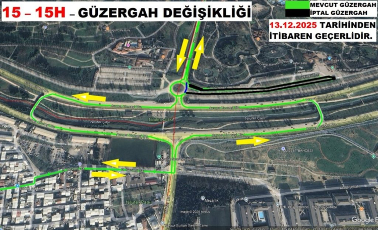 BURULAŞ, 15, 15H ve D1A numaralı otobüs hatlarında güzergâh değişikliğine gidildiğini duyurdu.