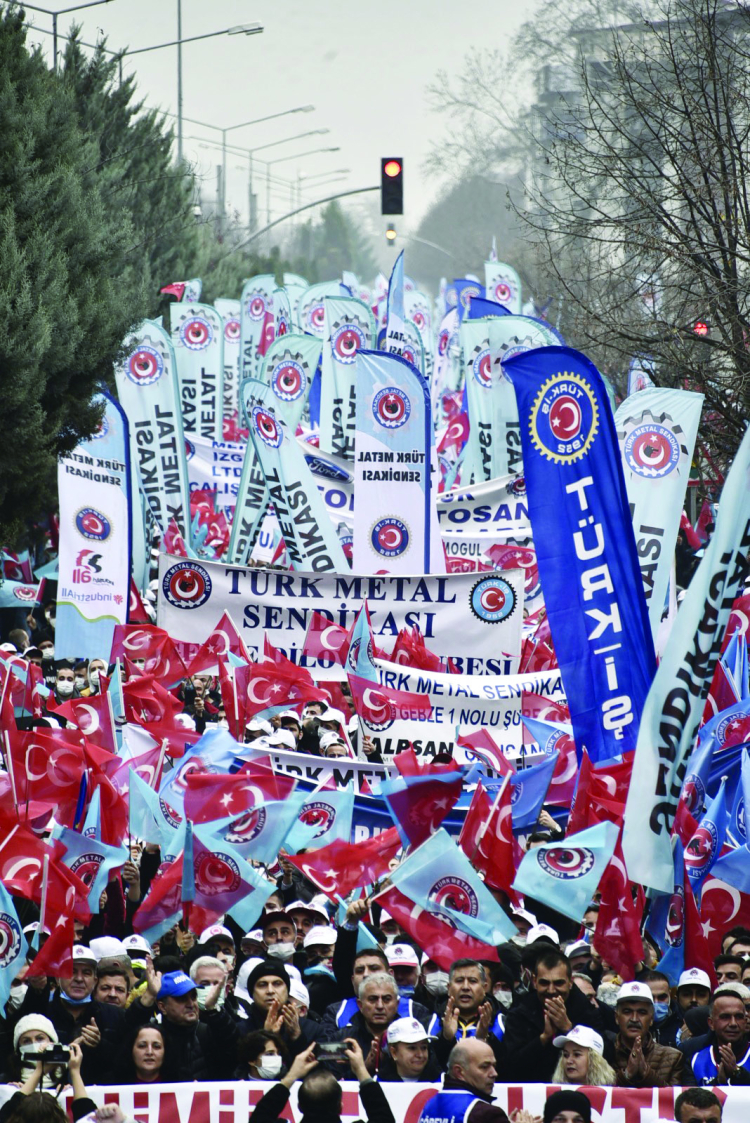 "Ramazan Bayramı yardımı, eğitim yardımı, yakacak yardımı gibi sosyal yardımlar için yıllık yüzde 65 zam talep ediyoruz. Diğer sosyal yardımlarımızdan farklı olarak Kurban Bayramı yardımının ise yıllık yüzde 80 arttırılmasını talep ediyoruz. Bütün bu sosyal yardımlarımızın ikinci yıllarında ise gerçekleşen yıllık enflasyona artı 5 puan iyileştirmeyle zam yapılmasını da istiyoruz. İşte sosyal yardımlarımıza istediğimiz bu rakamlarla taslağımızın birinci altı ayı için talep ettiğimiz toplam zam oranımız yüzde 38,97'yi buluyor. Bunlarla birlikte tamamlayıcı sağlık sigortası uygulamasının üyelerimizin eşleri için de geçerli olmasını talep ediyoruz."