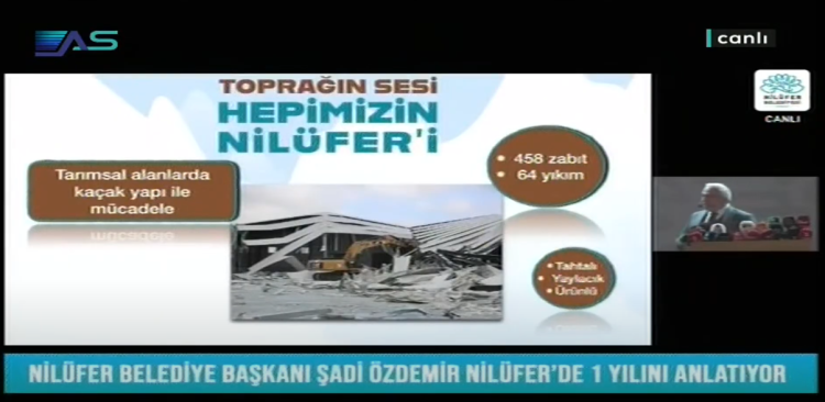 Geçtiğimiz günlerde 1 yılda 64 kaçak yapıyı yıktıklarını açıklayan Nilüfer Belediye Başkanı Şadi Özdemir, “Nilüfer’de tarımı yeniden ayağa kaldırmak istiyoruz. Bunun için ilk olarak tarım alanlarını korumak istedik ve tarım alanlarında yapılan kaçak yapılarla mücadeleye ağırlık verdik." ifadelerini kullanmıştı. Ayrıca 458 yapı hakkında da zabıt tuttuklarını ifade eden Özdemir, "Yıkma işleminin de bir süreci var hemen yıkamıyorsunuz. Tebligatlar yapıyorsunuz, itirazlar oluyor... " demişti.