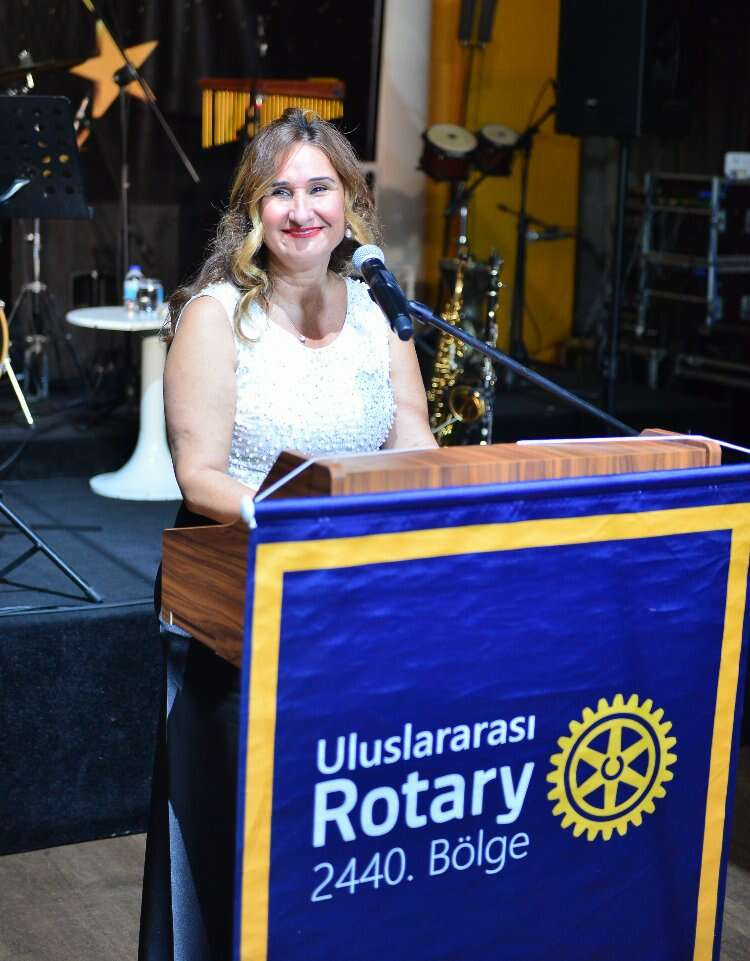 Geceyi onurlandıran Rotary 2440. Bölge Guvernörü Ayda Özeren ise Ulu Önder Mustafa Kemal Atatürk'ün izinden durmadan yürüyeceklerini ifade etti.