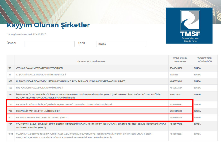 Tasarruf Mevduatı Sigorta Fonu (TMSF) şirketin müdürü G. G.'nin görevine sonra vererek diğer iki şirketi de yöneten 11 kişiyi müdür olarak atadı.