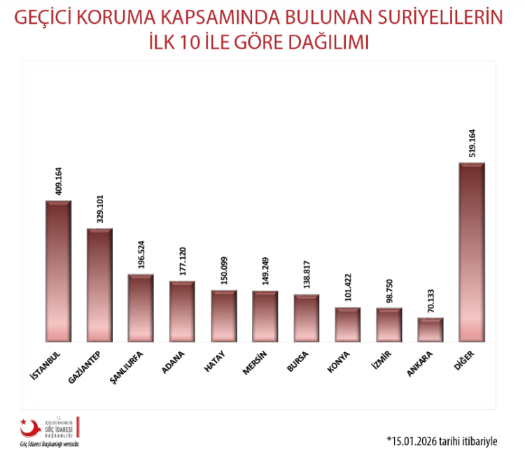 2025 senesinin Ocak ayında Bursa'da 167 bin 859 Suriyeli bulunuyordu.